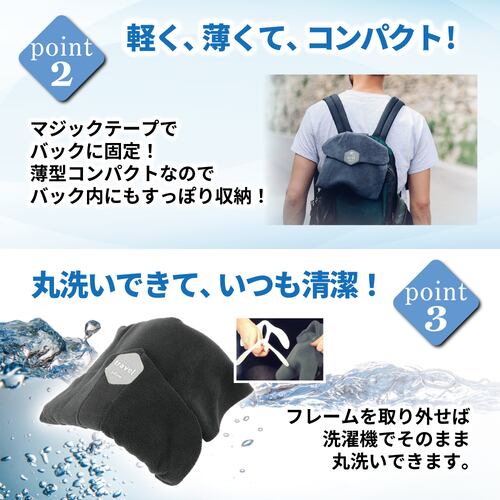 まったく新しいタイプの旅行用枕。従来のU型旅行用枕に比べて断然の使い心地。